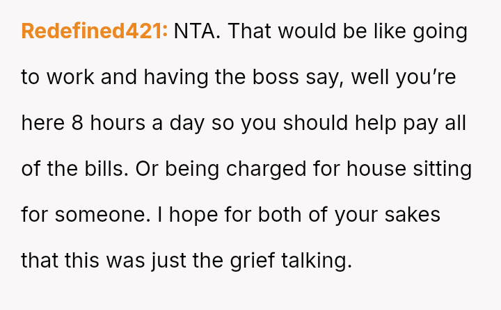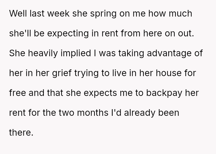 Given the emotional volatility of grief and the unexpected financial shift, was the friend's demand for immediate rent and back payment a betrayal of the support offered, or was the OP operating under an unsustainable, unspoken agreement that legally and practically required clarification on housing costs?