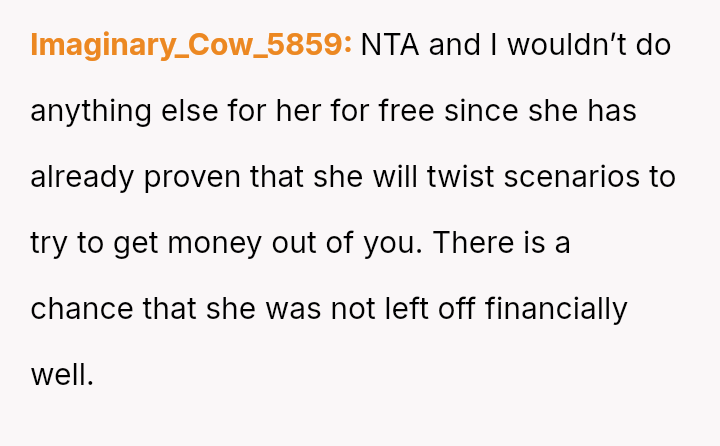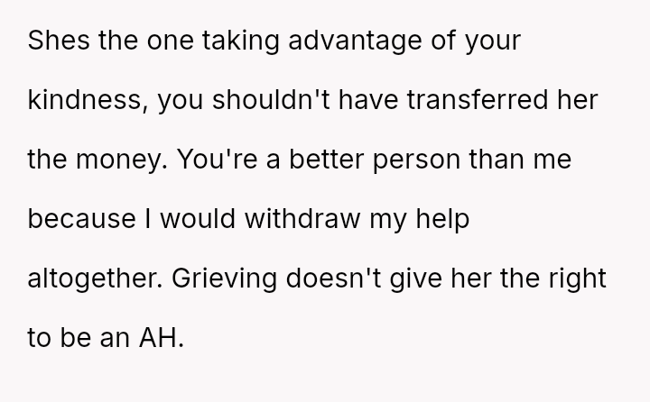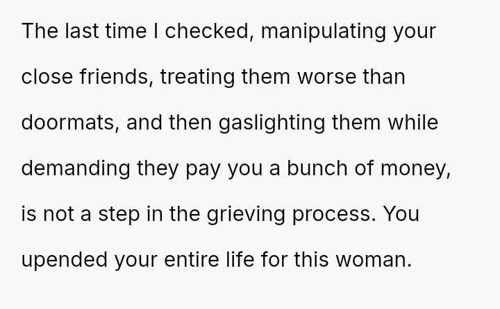 The original poster (OP) faced a difficult situation where their desire to support a grieving friend conflicted sharply with the friend's sudden financial demands.