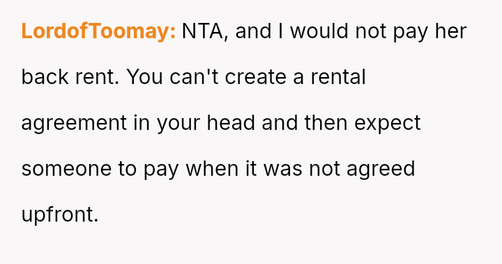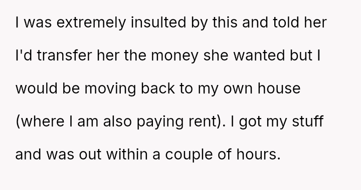 This arrangement ended abruptly when the friend demanded rent and back pay, forcing the OP to move out immediately.