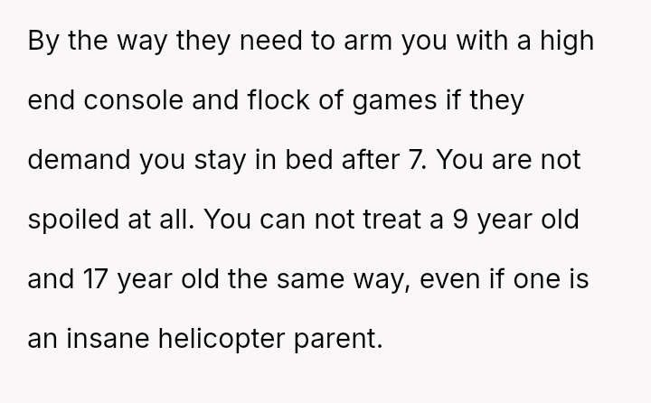 The central conflict lies between the OP's need for autonomy and appropriate accommodation versus the father's adherence to the stepmother's strict parenting structure, further complicated by the mother labeling the OP as spoiled.