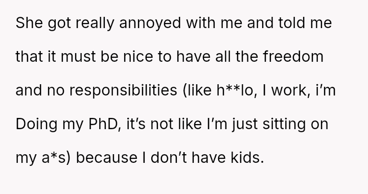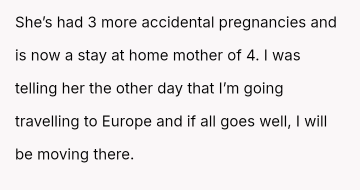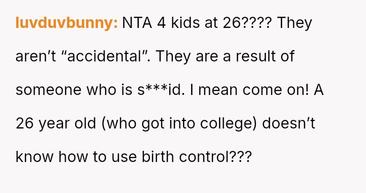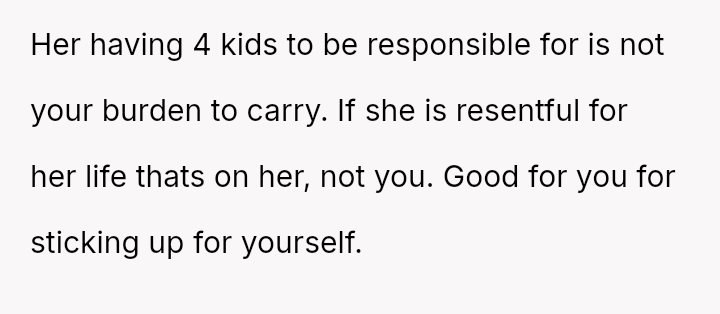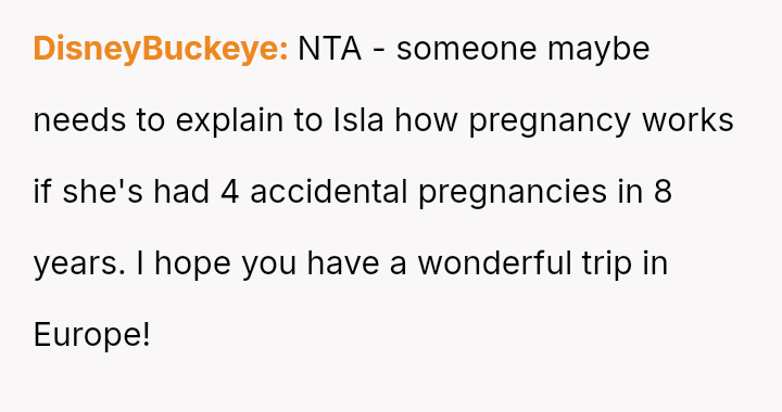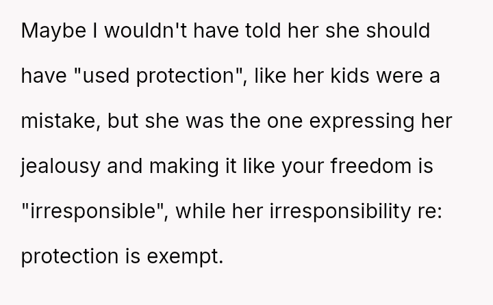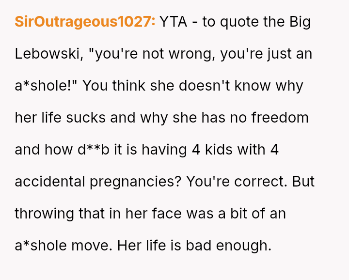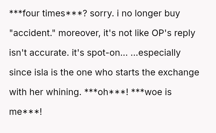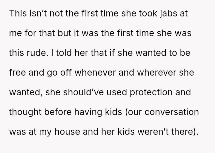 Was the OP justified in responding sharply to Isla’s pointed remarks about her lack of responsibility, or did her words cross a line given Isla’s situation as a mother of four?