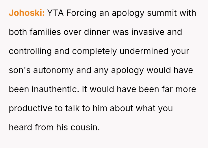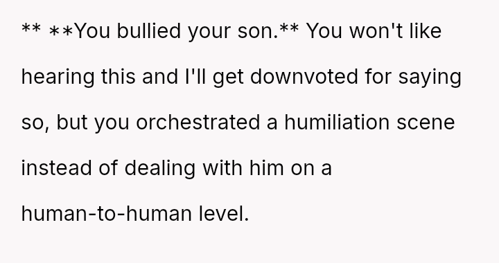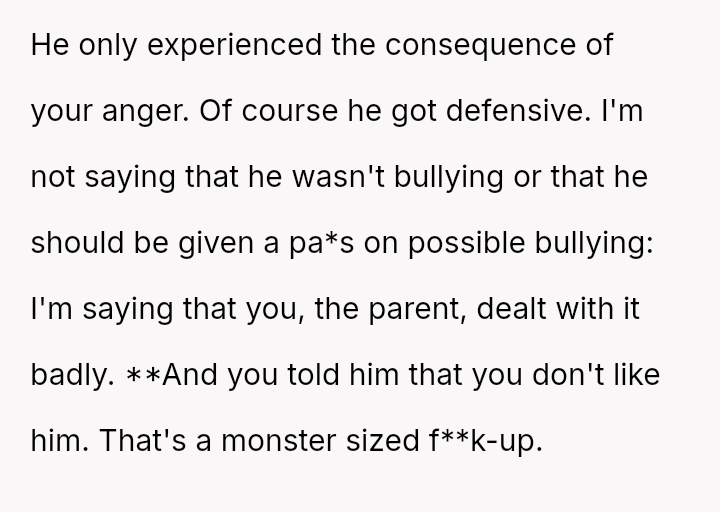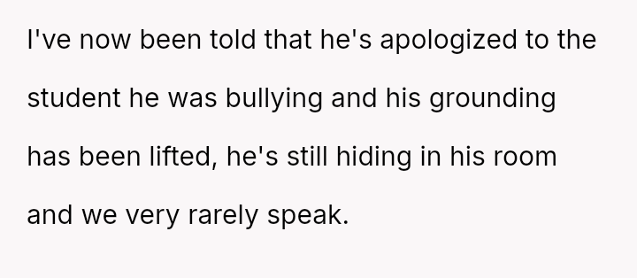 Was the mother justified in using harsh emotional language and severe grounding tactics to force an apology for unacceptable bullying, or did her response v***ate necessary relational boundaries, ultimately pushing her son further away before the root cause of his behavior was addressed?
