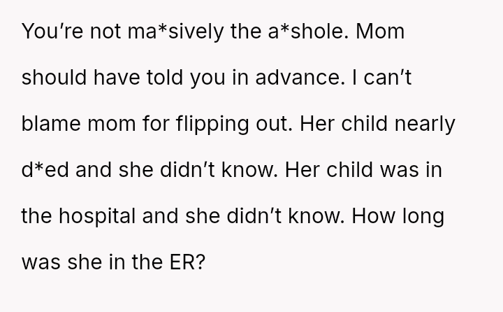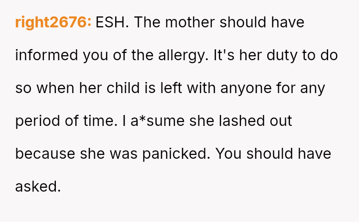 The original poster (OP) finds himself in a difficult situation where a child's severe allergic reaction occurred under his care, leading to significant distress and conflict with the child's mother.