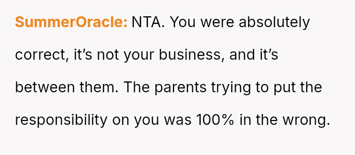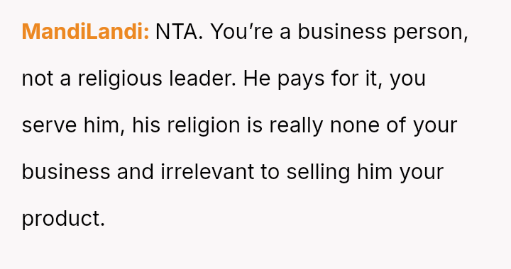 The original poster (OP) is firm in their position that running a business requires fulfilling customer requests as long as payment is made, viewing the parents' concern as a private family matter outside the scope of their commercial responsibility.