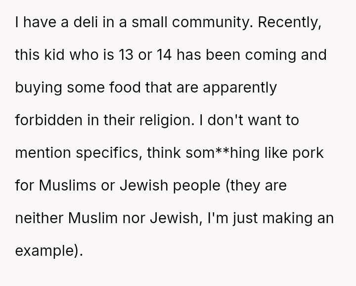 A young teenager’s choice to buy food forbidden by his family’s religion has sparked a poignant dilemma, forcing a local shopkeeper to navigate the fragile boundary between respect for personal freedom and the weight of parental wishes.