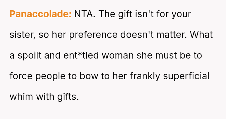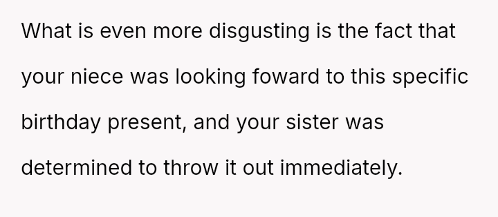 Given the sister's history of extreme control over gift selection and disposal, was the OP justified in intentionally gifting a non-approved toy to honor the child's wishes, or should the OP have respected the sister’s es**blished boundaries, regardless of how unreasonable they seemed?