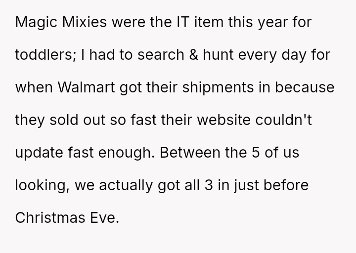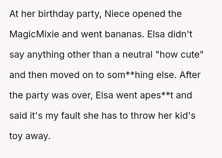 The niece’s longing for a MagicMixie, a toy outside her mother’s strict Disney-only rule, sparked a quiet rebellion against an unyielding policy that threatens to suffocate the joy of childhood.