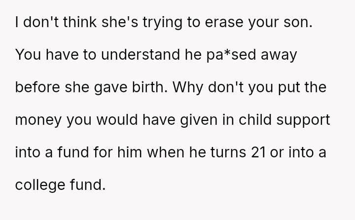 This clashes directly with the OP's desire to maintain a familial connection rooted in their son's memory.