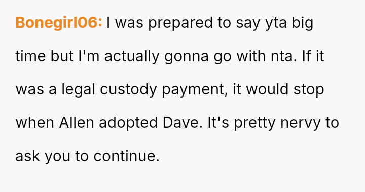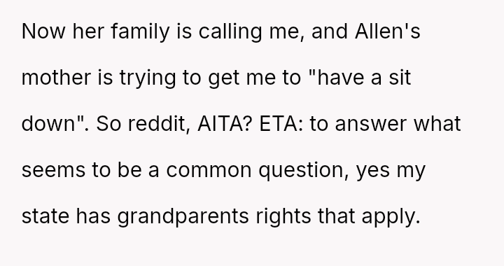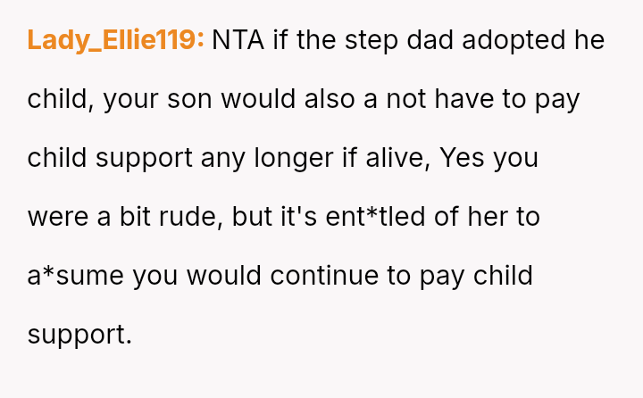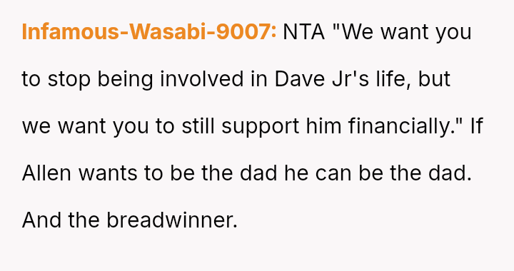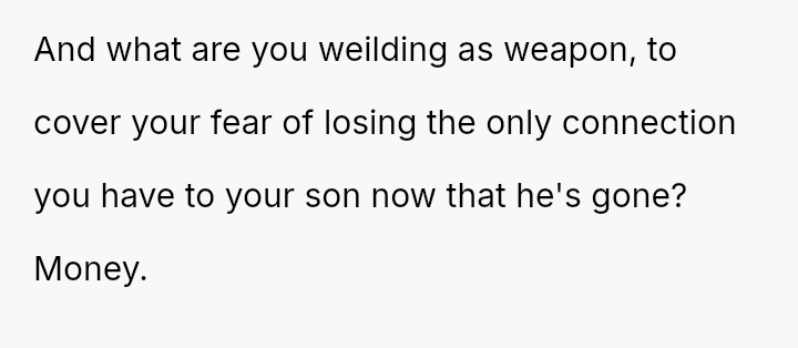 The central question is whether the OP's refusal to continue financial support and their harsh dismissal of Lissa and Allen are justified reactions to the proposed erasure of their son's legacy, or if these actions const*tute an unfair imposition on the child's new s**ble family structure.