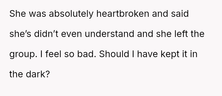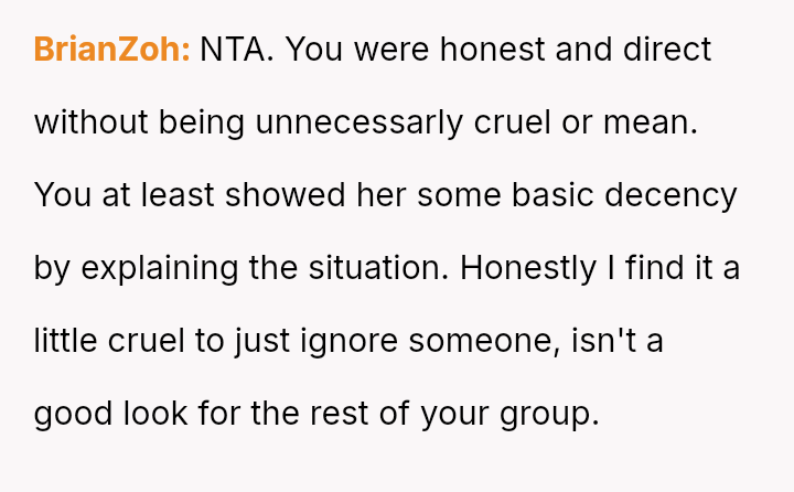 Given the OP's intervention, which led to the member's departure, the central question remains: Was it better to allow the group to continue ignoring the newcomer, thereby maintaining social peace within the existing circle, or was direct, albeit painful, honesty necessary to explain why the individual was not fitting in?