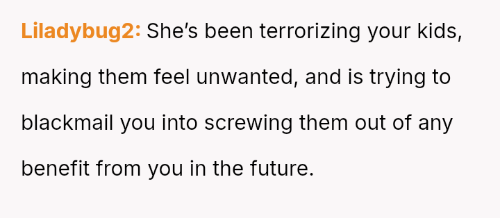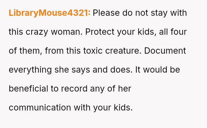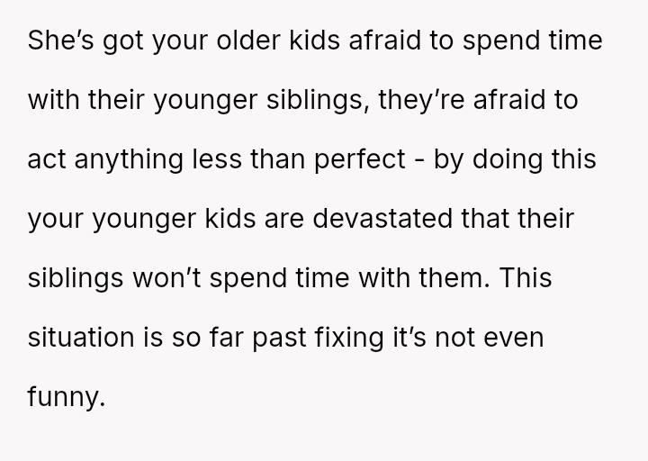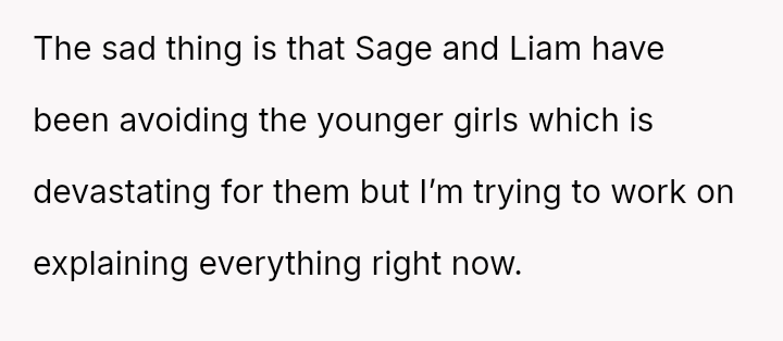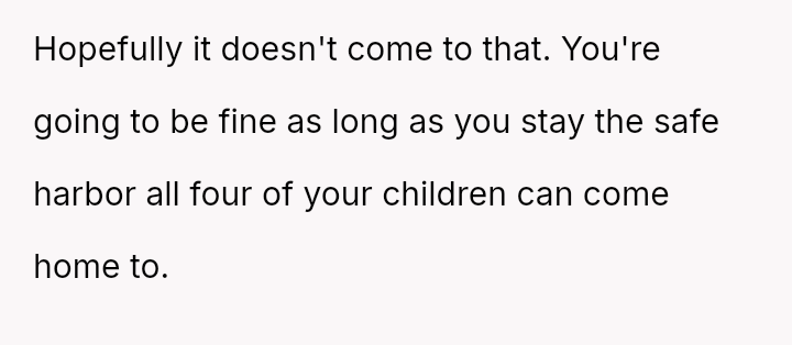 The Original Poster is now managing significant emotional fallout, having learned that their older children feel unsafe and are sacrificing their well-being to maintain s**bility.