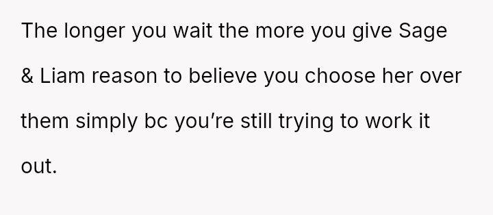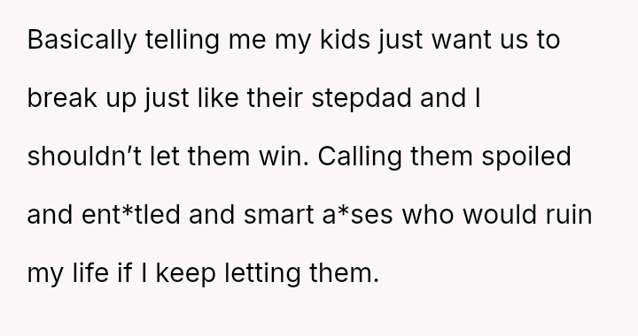 The core question becomes whether the OP can reconcile a partnership that requires the alienation and emotional sacrifice of existing children, or if prioritizing the s**bility and mental health of all four children necessitates ending the relationship entirely.