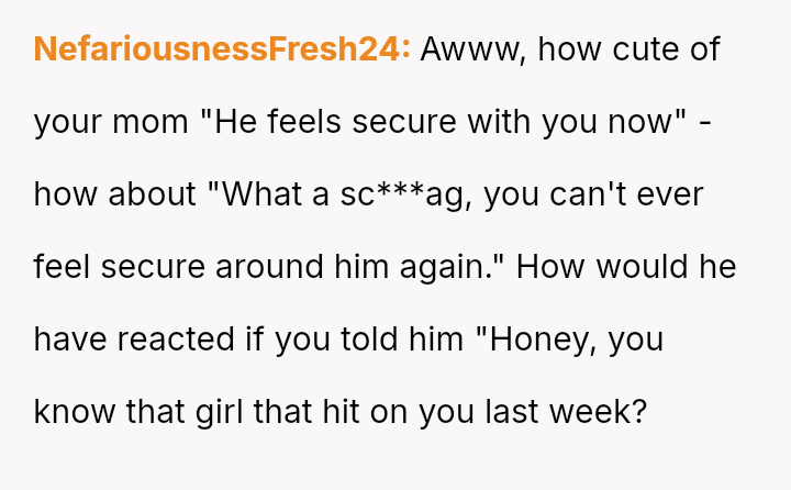 Her reaction of anger and refusal to move forward reflects a justifiable feeling of betrayal, standing in direct conflict with her partner's manipulative actions and his subsequent minimization of her feelings.