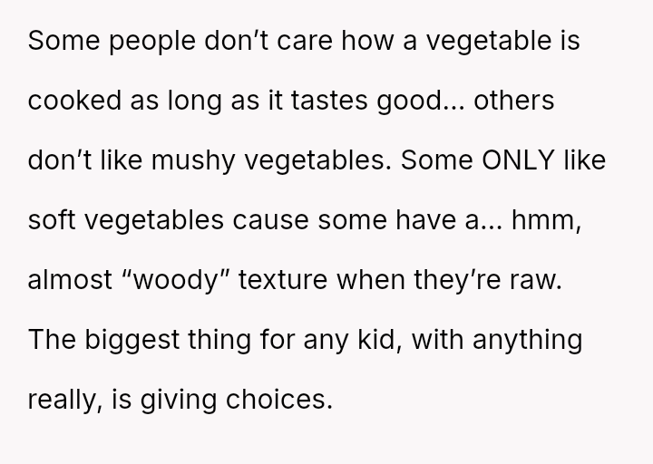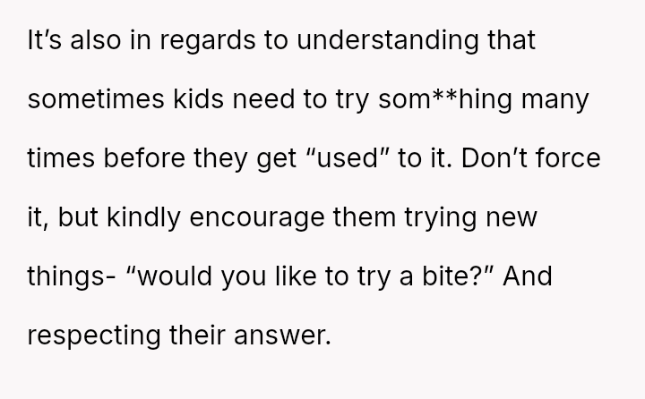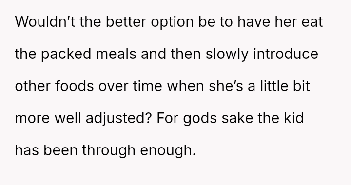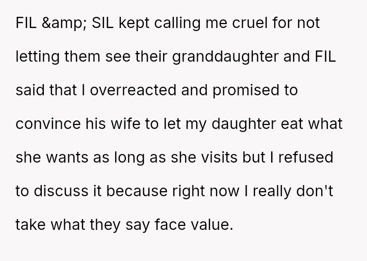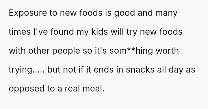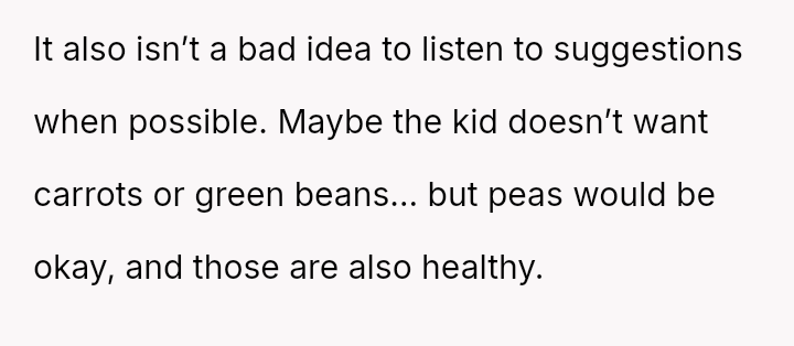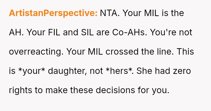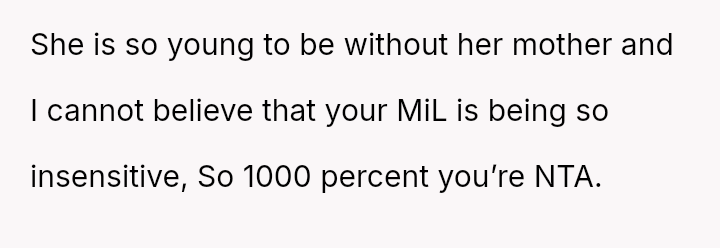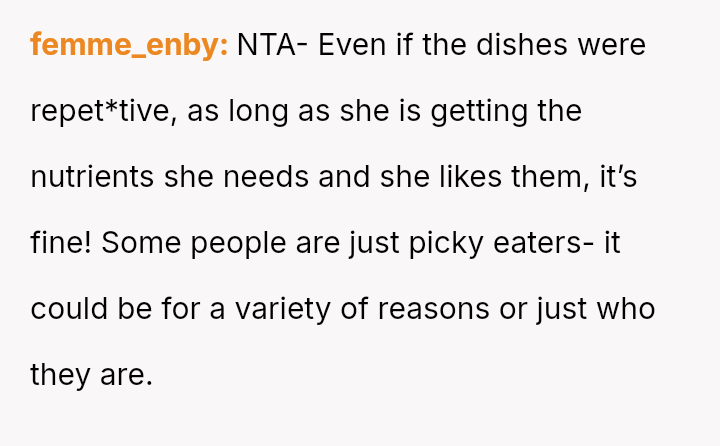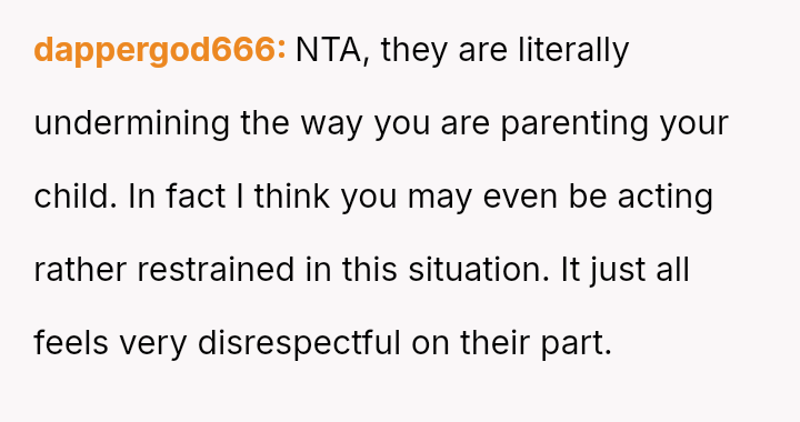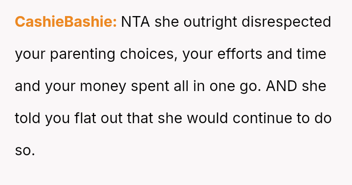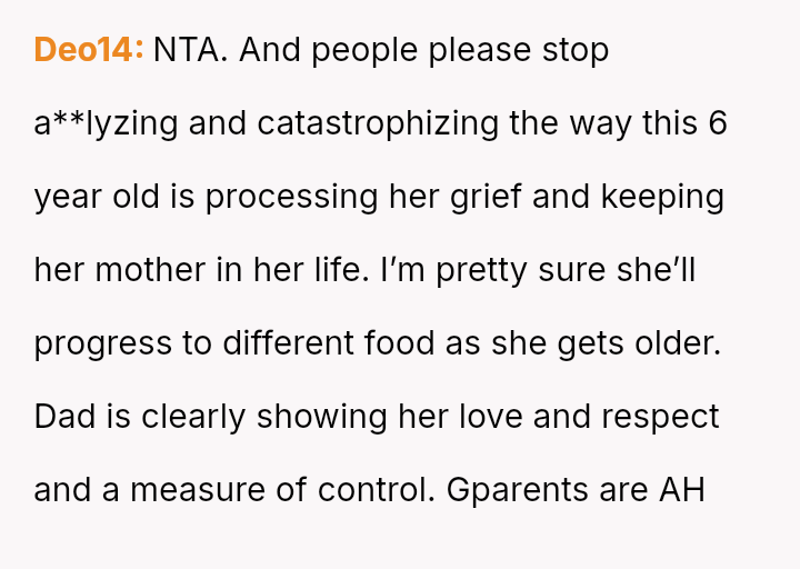 His mother-in-law (MIL), conversely, has prioritized her own desire to cook and a*sert her preferred parenting standards over respecting the OP's efforts and the child's emotional needs.