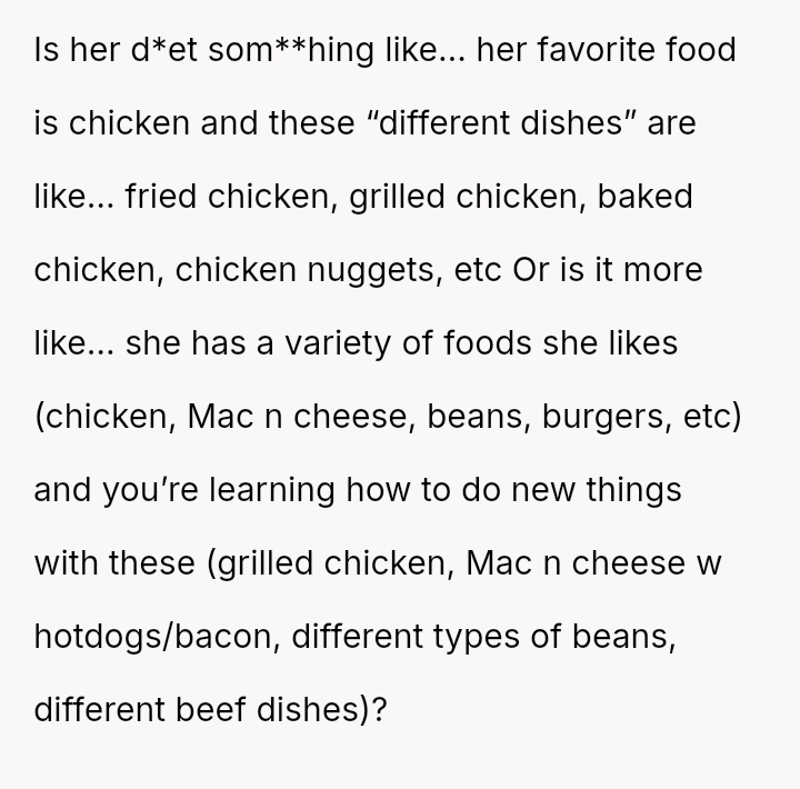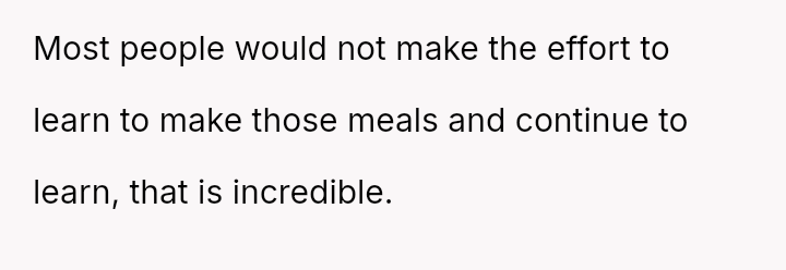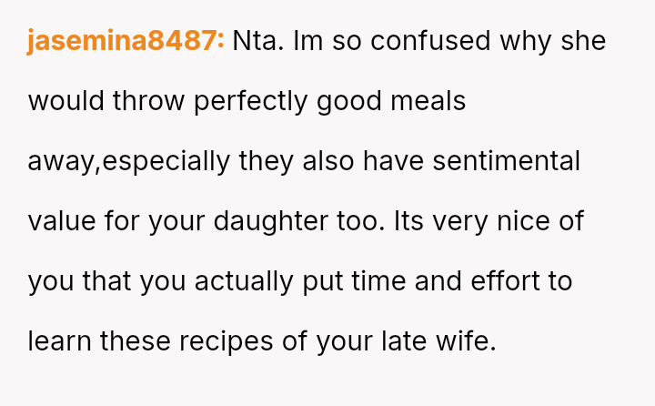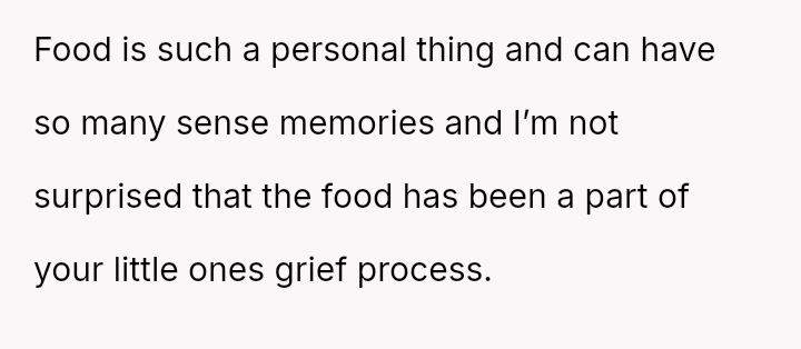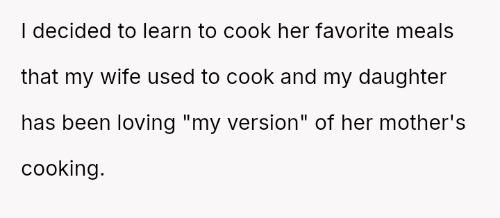 The OP is trying to comfort his grieving daughter by maintaining the connection to her late mother through food, which requires considerable personal effort.