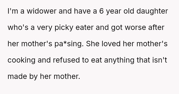 Grief had carved a silent ache in the heart of a widowed father, who watched helplessly as his young daughter, clinging to the memory of her mother, refused to eat anything but the meals her mother once lovingly prepared.