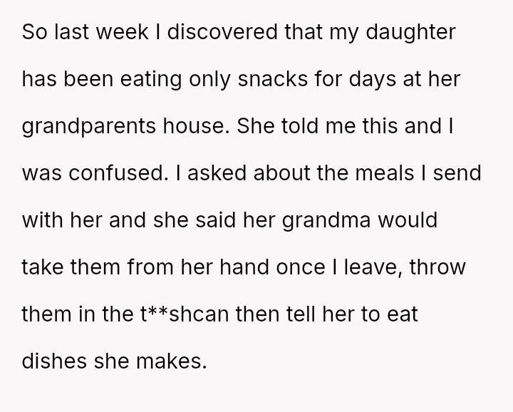 Entrusting his daughter to the care of her grandparents, he faced harsh judgment and unexpected truths—his carefully crafted meals rejected, replaced by empty snacks, revealing the silent struggle of a child caught between love, loss, and the confusing world of grown-up expectations.