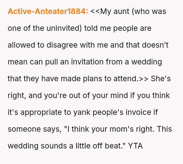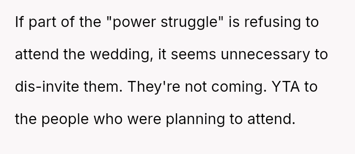 Is the OP justified in protecting their wedding vision and emotional well-being by rescinding invitations from family members who created last-minute conflict, or were their actions an overly punitive response to disagreements that should have been managed through continued negotiation and acceptance of differing family views?