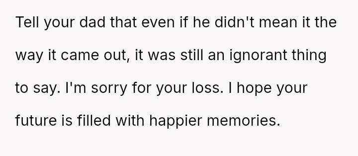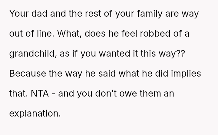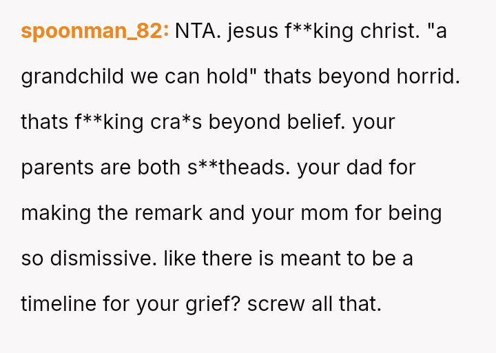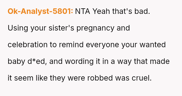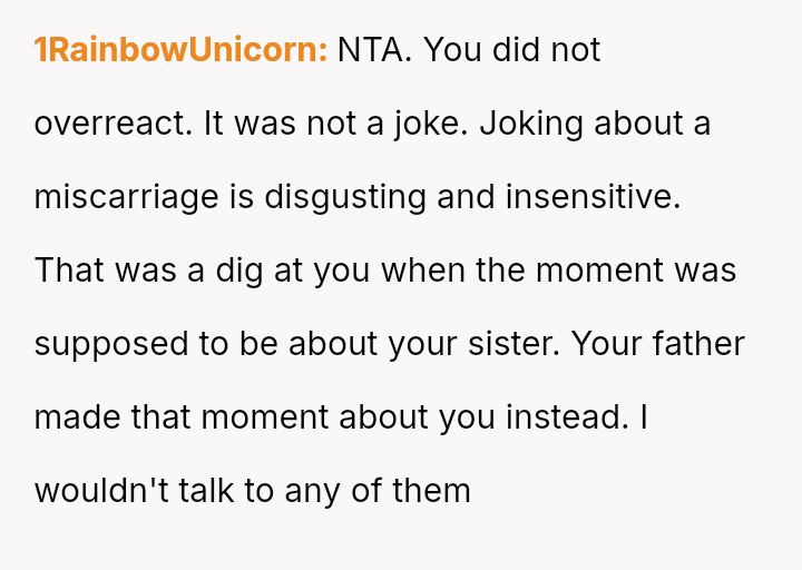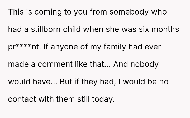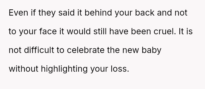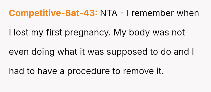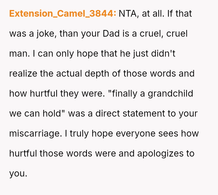 About a year and a half ago, the original poster (OP) experienced a miscarriage, an event that caused deep emotional distress. Although the OP has been trying to heal, the family is aware of the difficulty of this experience.