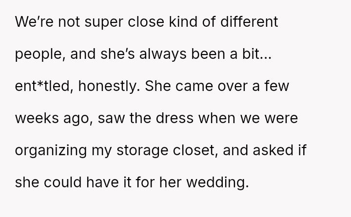 Now, her younger sister’s unexpected plea to claim the dress reignites a storm of feelings—resentment, protectiveness, and the ache of memories too painful to share.