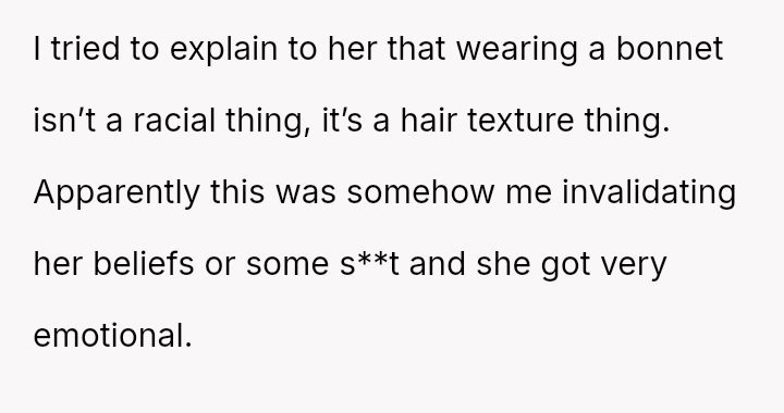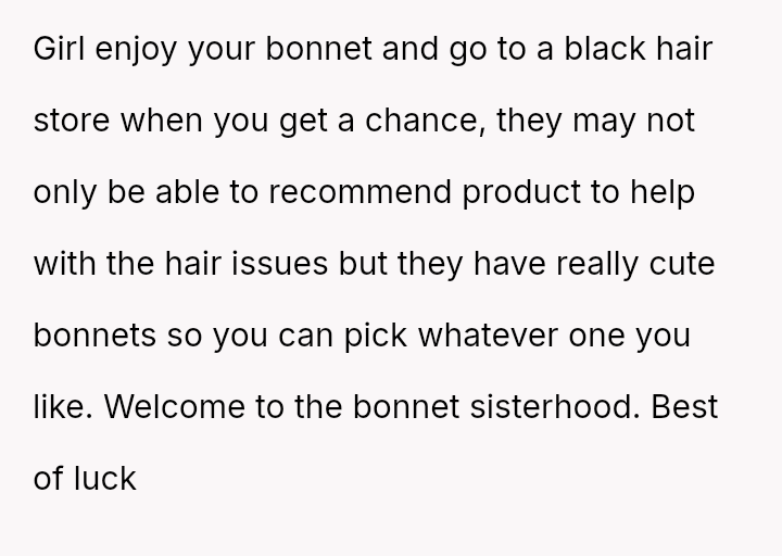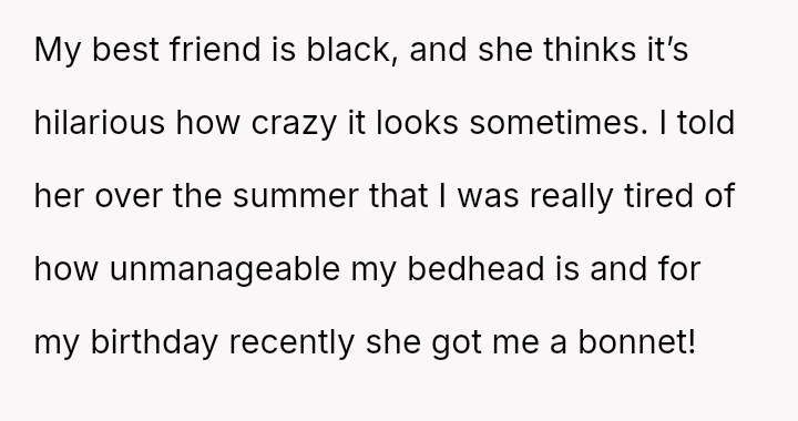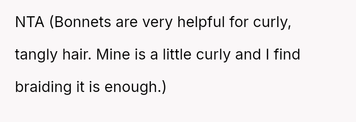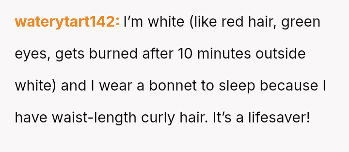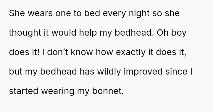 After mentioning this issue over the summer, the OP's Black best friend gifted them a satin bonnet for their birthday, noting that she wears one nightly. The OP found that wearing the bonnet drastically improved their hair management.