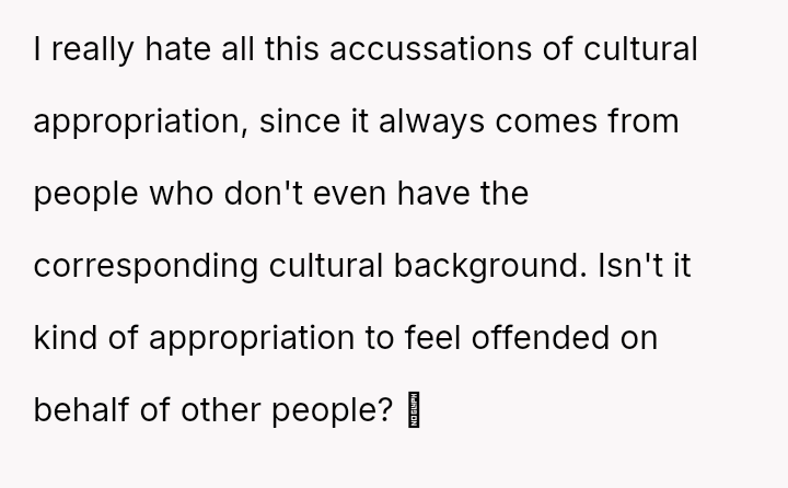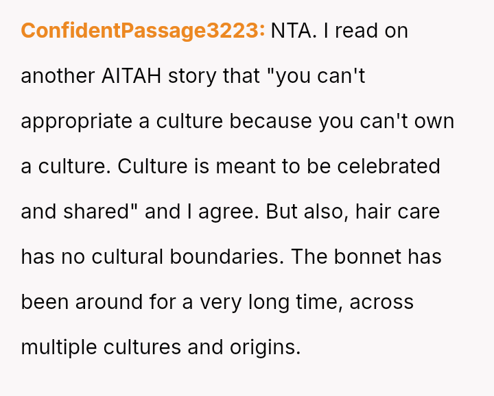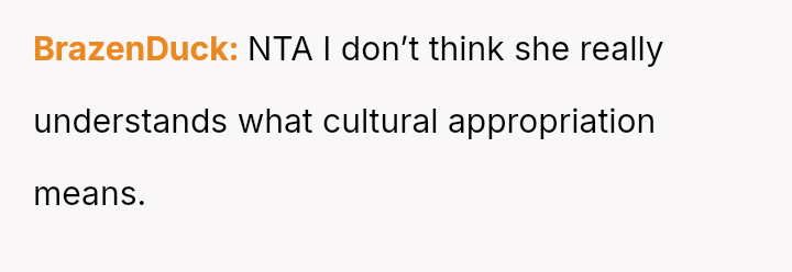 The core conflict revolves around the OP prioritizing their practical need and the positive feedback from their best friend over the strong, emotionally charged accusation of cultural appropriation made by a relative acquaintance.