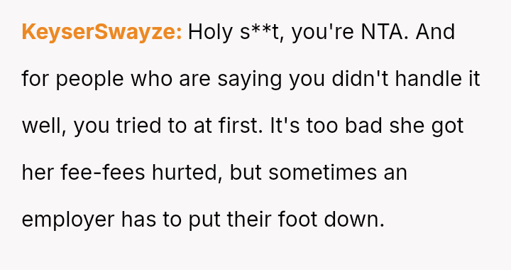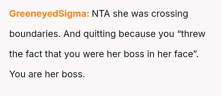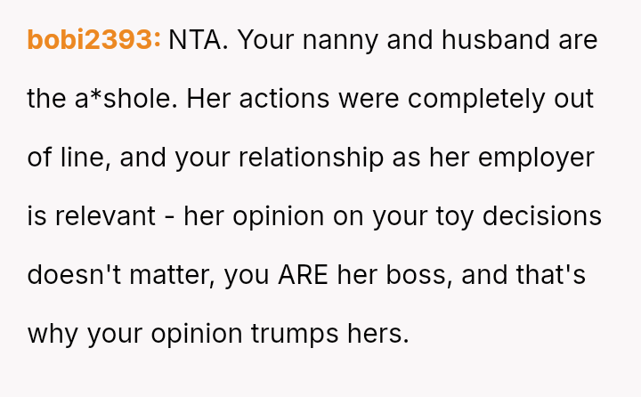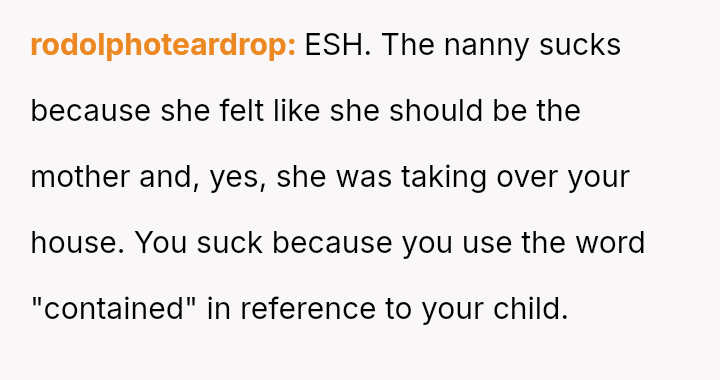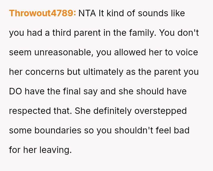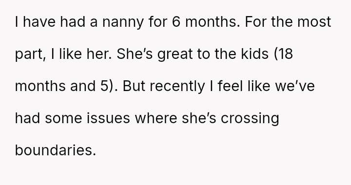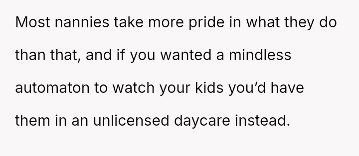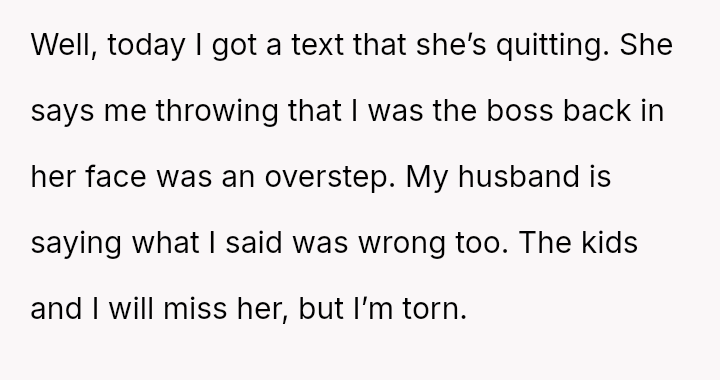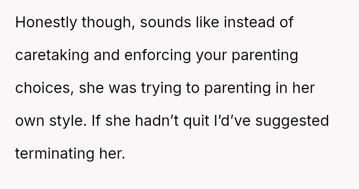 The OP felt compelled to a*sert their authority by directly questioning the nanny's judgment and explicitly stating the employment hierarchy, which ultimately led to the nanny resigning.