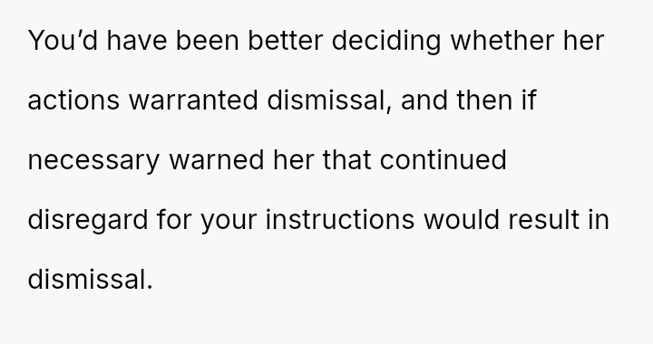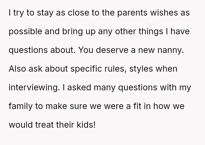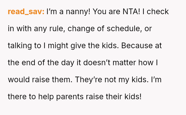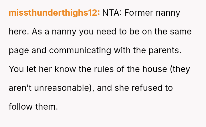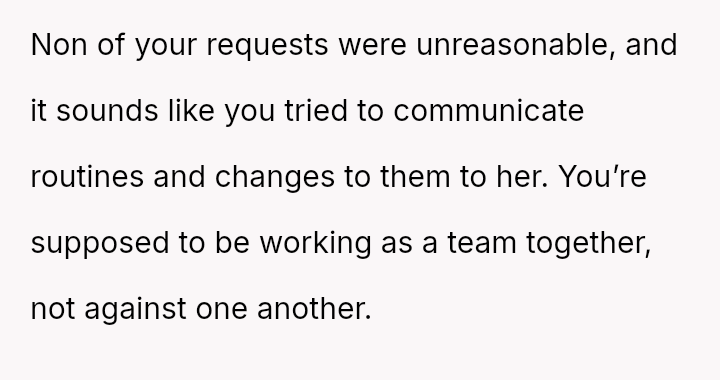 Was the OP justified in firmly enforcing the employment structure to maintain consistency in their parenting rules, or did the act of explicitly demanding obed*ence undermine the collaborative relationship necessary for effective childcare?