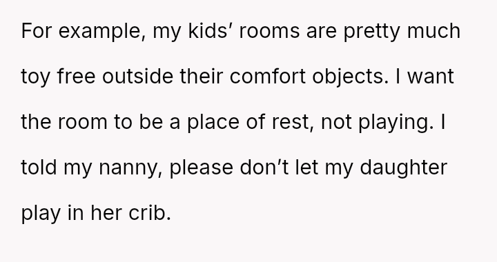 The Original Poster (OP) is facing a conflict where their hired nanny is repeatedly disregarding es**blished household rules regarding child discipline and organization, specifically concerning toys in the children's rooms and a temporary removal of toys as a consequence.