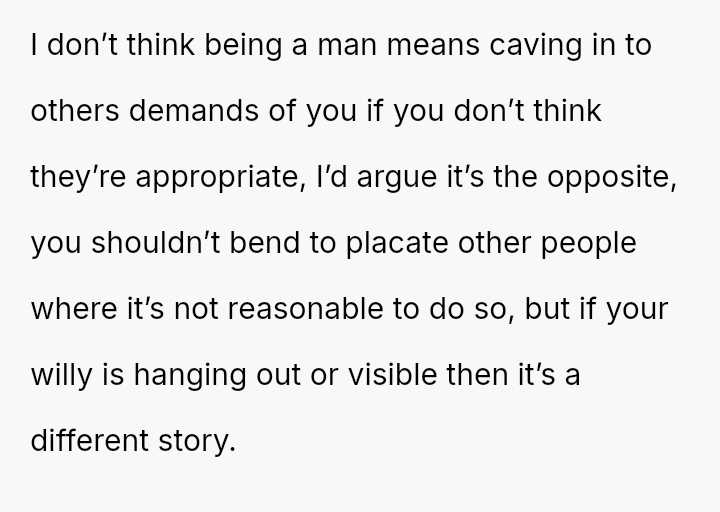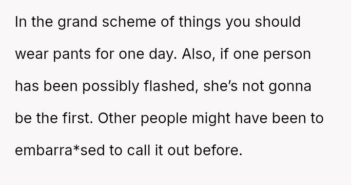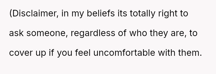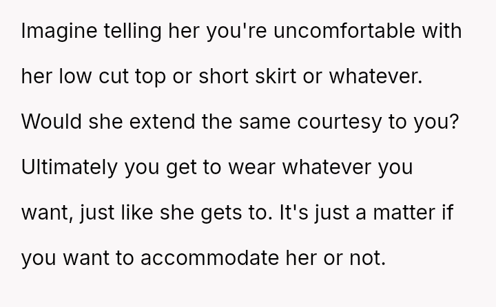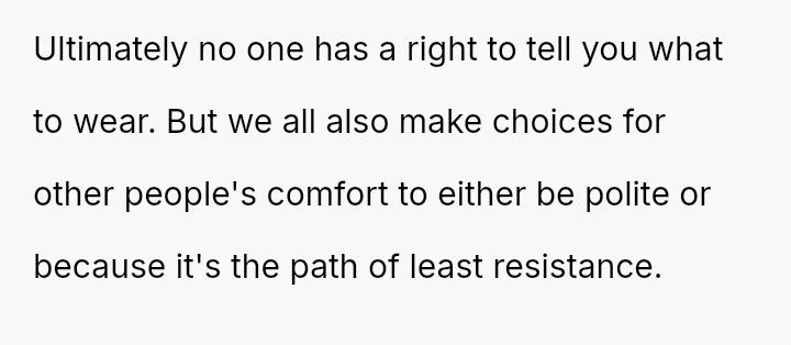 Is the OP acting unreasonably by disagreeing with the expectation to permanently alter personal clothing habits based solely on another adult's subjective discomfort, even if they are willing to comply in this specific instance?