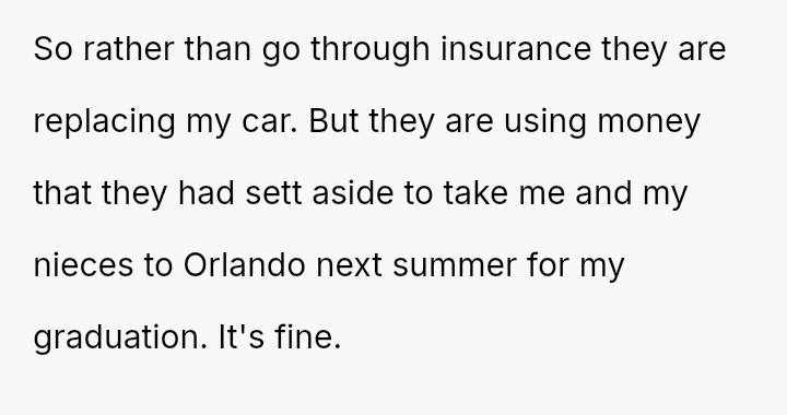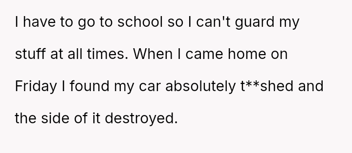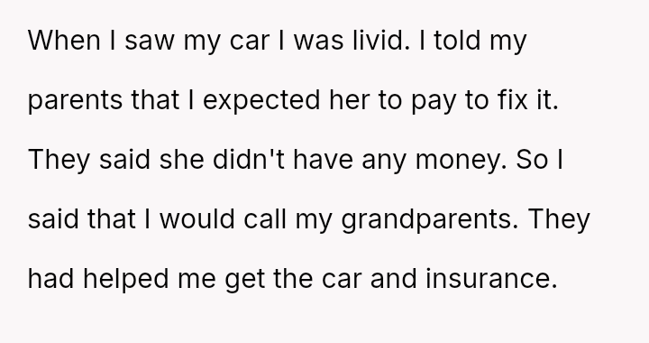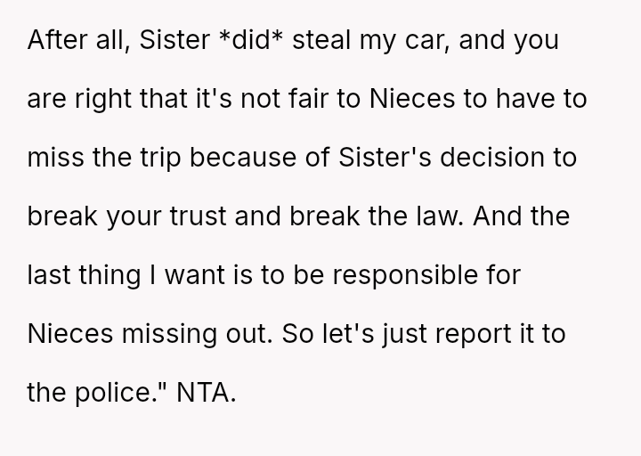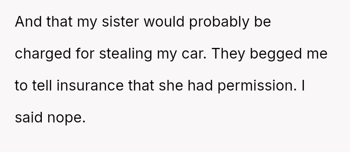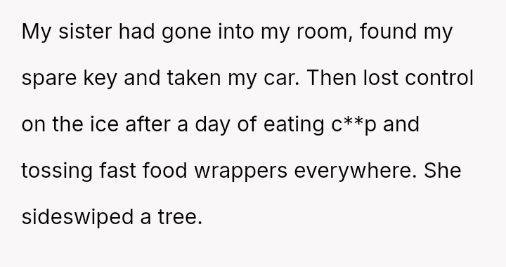 The original poster (OP) faced a severe v***ation of trust and property when her sister stole her car, leading to significant damage.