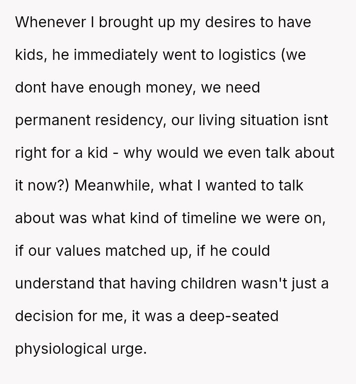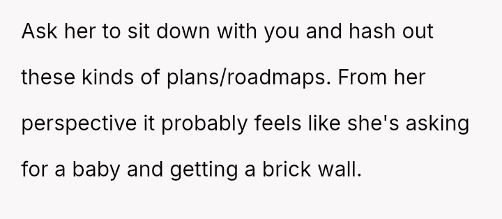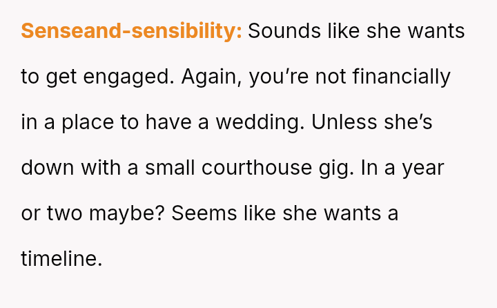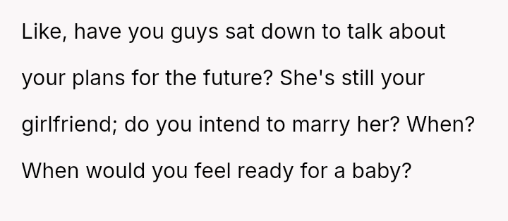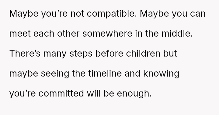 Is the OP justified in prioritizing his immediate educational and financial prerequisites, even if it causes significant distress to his partner, or does Katie have a valid claim that his refusal to engage with her timeline suggests a deeper, perhaps unspoken, lack of commitment to their long-term partnership?