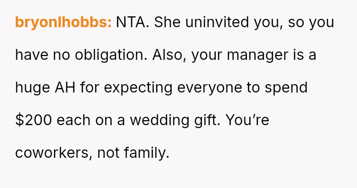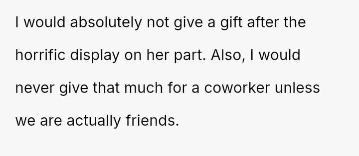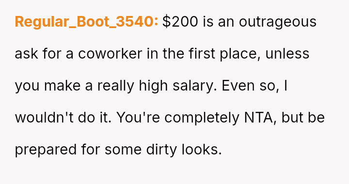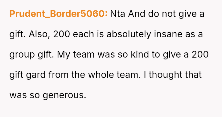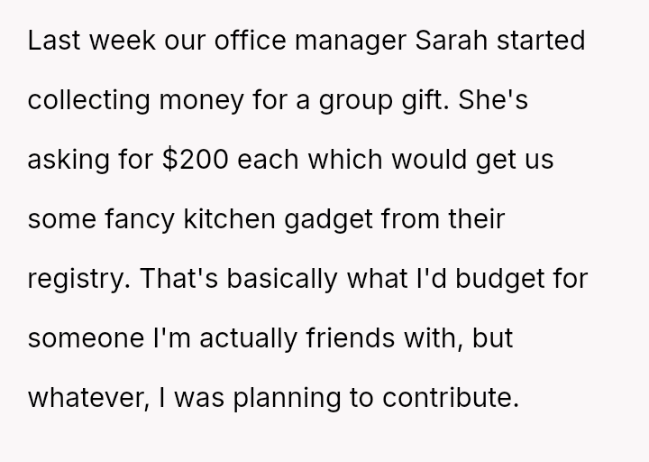 When the office manager, Sarah, began collecting money for a group gift of $200 per person, the OP was prepared to contribute.