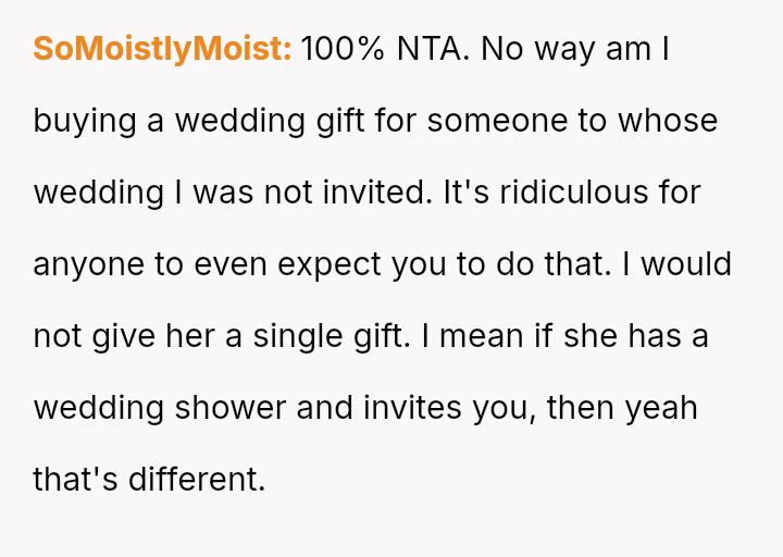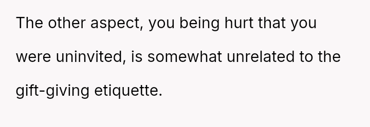 The core conflict centers on the expectation of continued social and financial participation in a celebratory event (the group gift) despite being explicitly excluded from the event itself.
