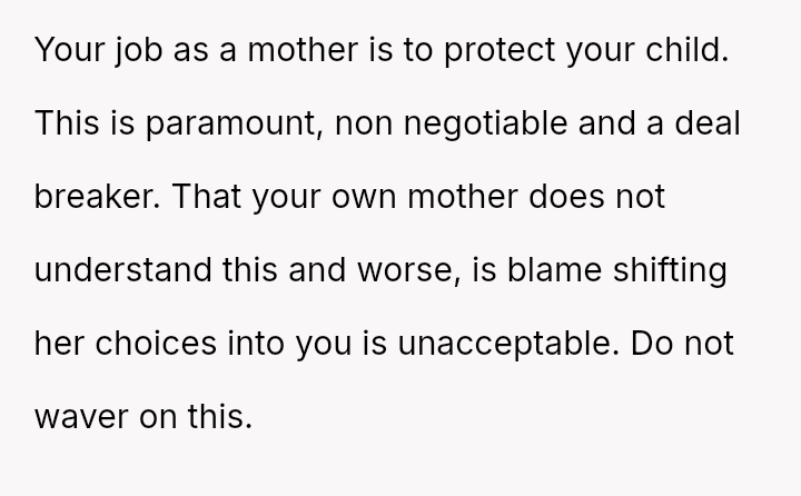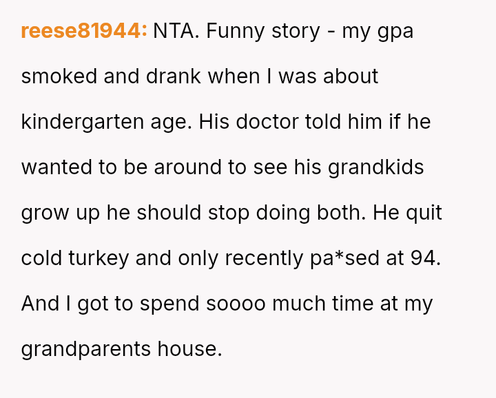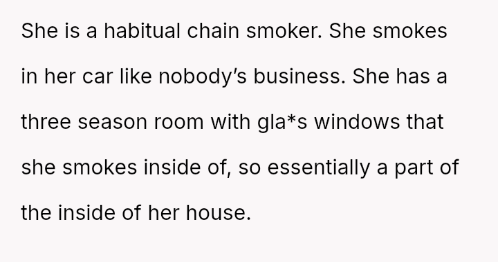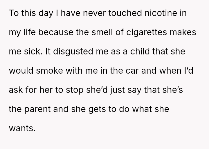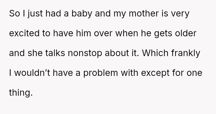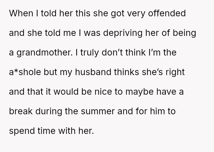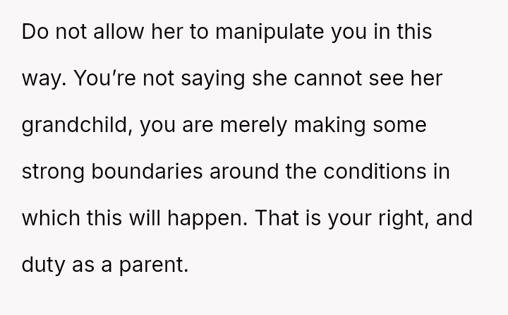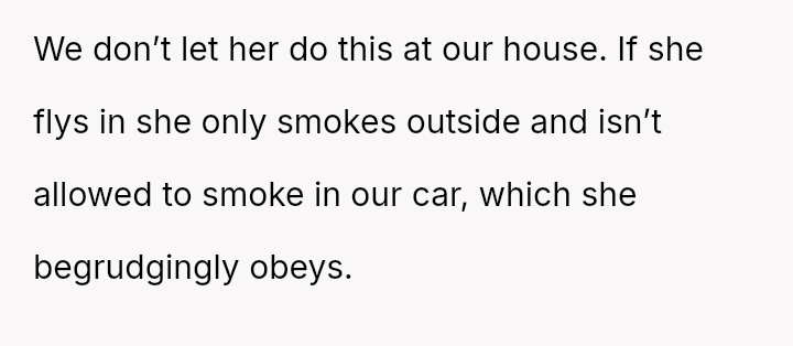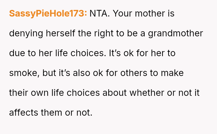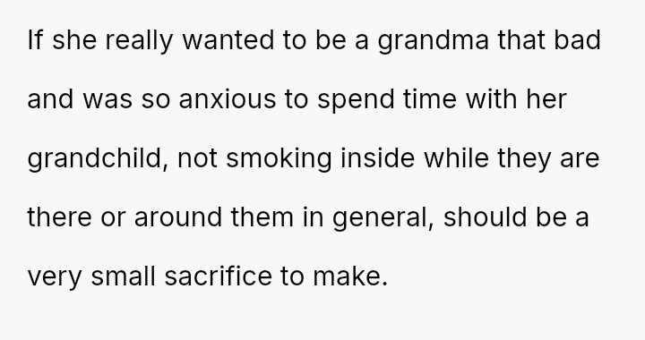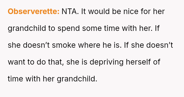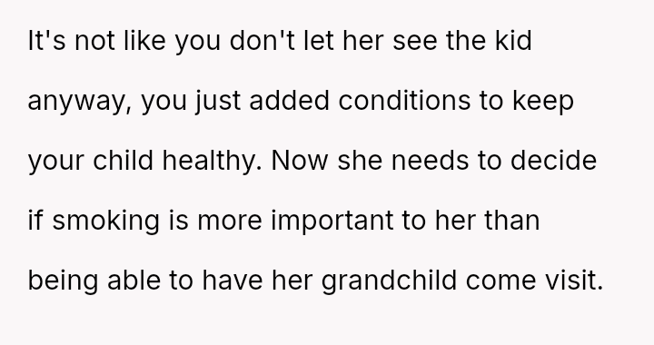 The mother feels her role as a grandmother is being restricted by the OP's firm boundary regarding smoking.