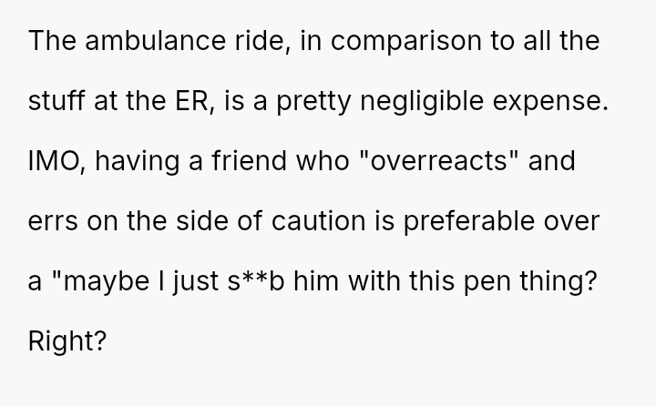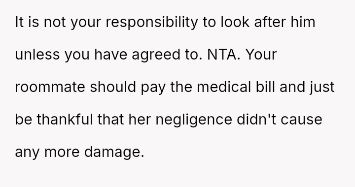 The original poster (OP) is caught between their roommate's expectation that they should have managed the childcare situation and administered the EpiPen, and the OP's own reaction of panic and subsequent refusal to cover the resulting medical bills.