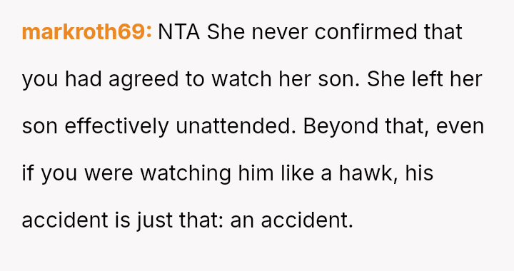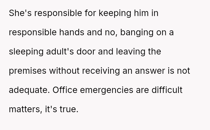 The central conflict revolves around shared responsibility for a child's safety, the failure of es**blished communication m**hods, and the financial consequences of an emergency.
