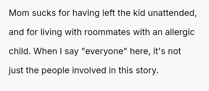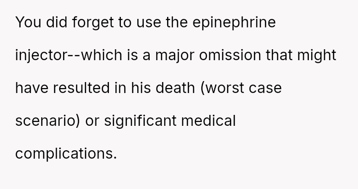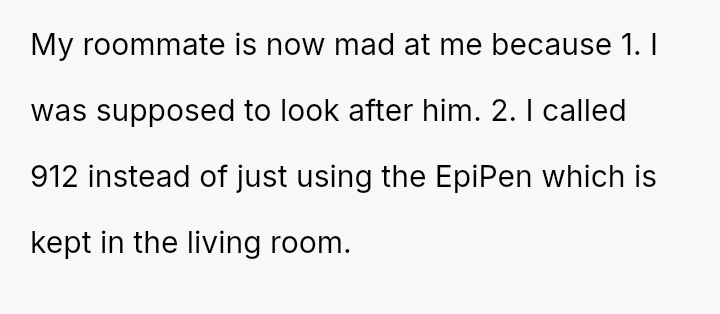 Was the OP primarily at fault for not hearing the roommate's request and failing to use the known EpiPen during a panic, or is the roommate responsible for relying solely on a deep sleeper for emergency childcare and for the ensuing financial demand? Where should the responsibility lie when a severe allergy reaction occurs under shared custody?