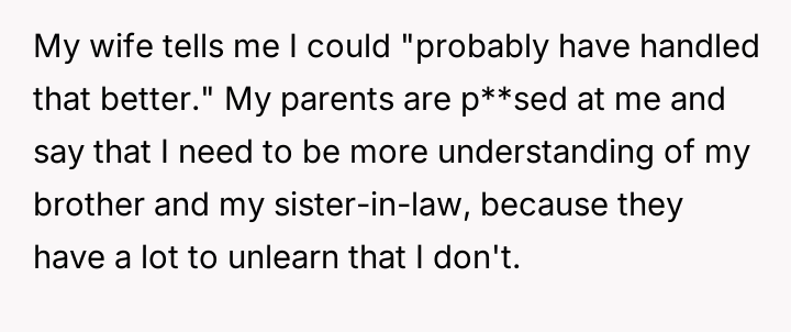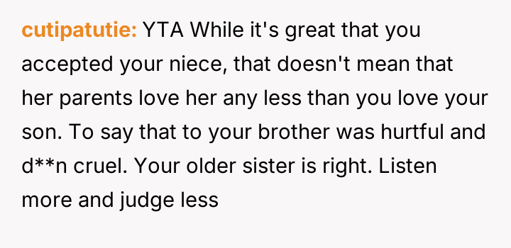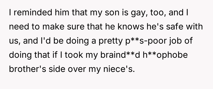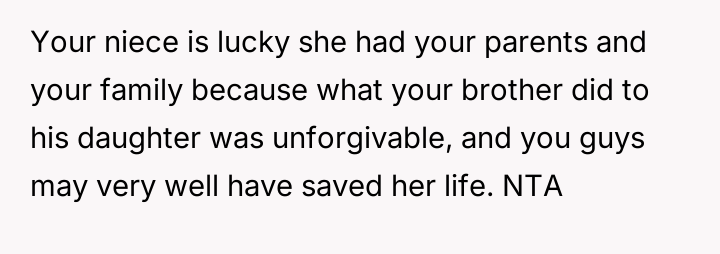 Is the OP justified in prioritizing the immediate emotional safety and validation of their niece over their brother's desire to dictate the terms of their reconciliation, or did the OP overstep by making a direct comparison between their parenting and their brother's, thereby permanently damaging the family relationship?