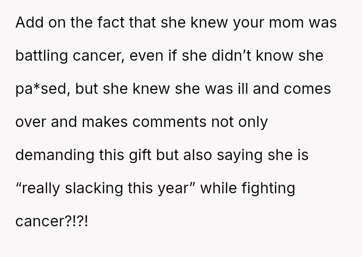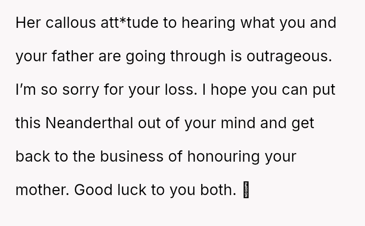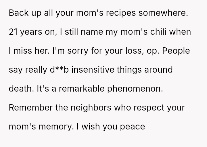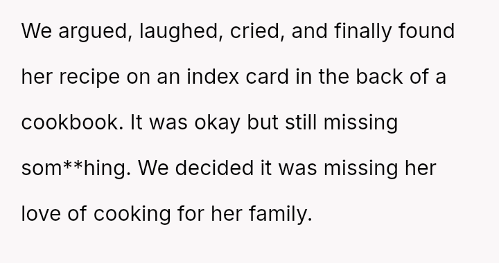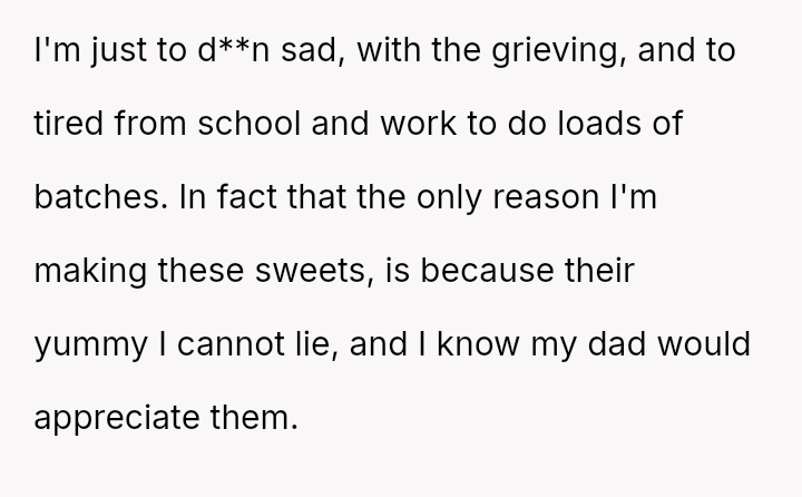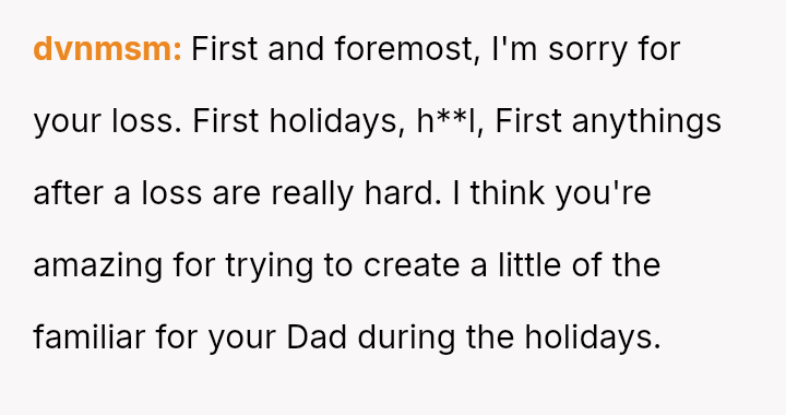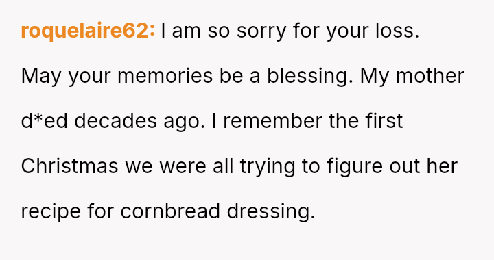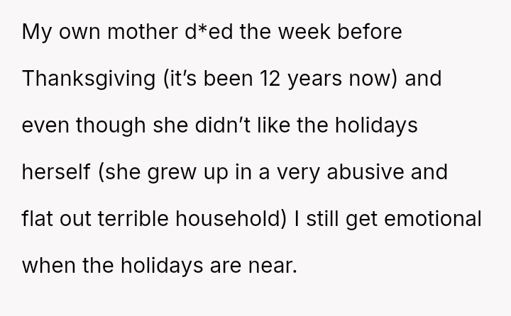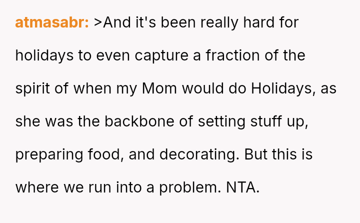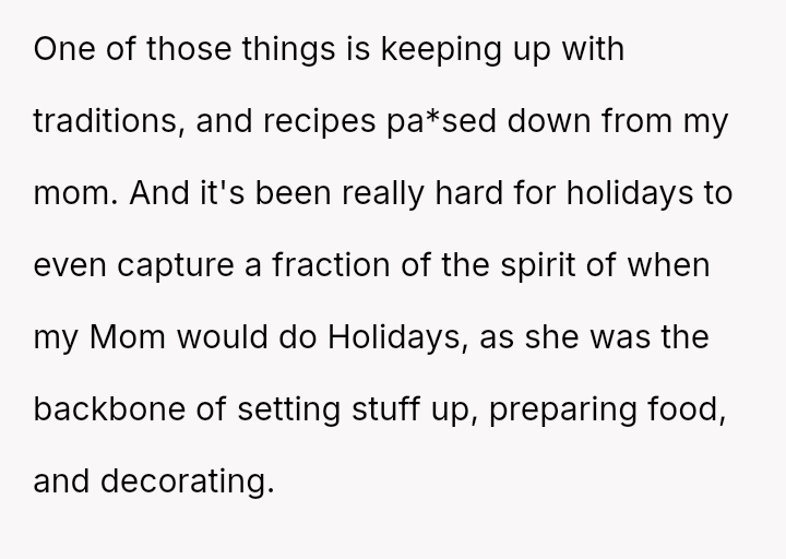 His reaction stemmed from the shock of a seemingly trivial request ignoring the recent, devastating loss of his mother, who was the sole provider of these traditions.