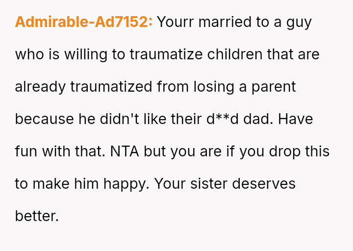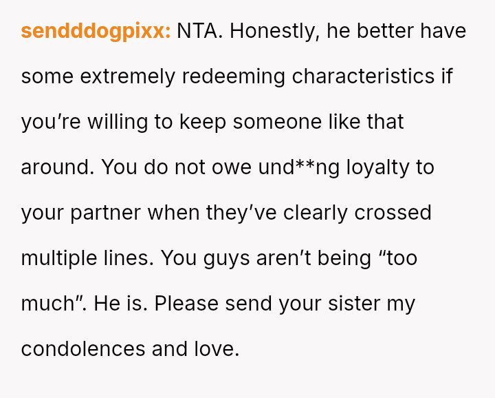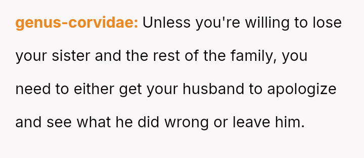 How should the family balance acknowledging the husband's poor judgment with supporting the sister's immediate need to shield her children from further pain?