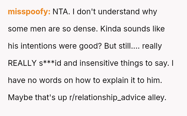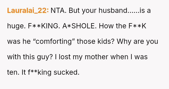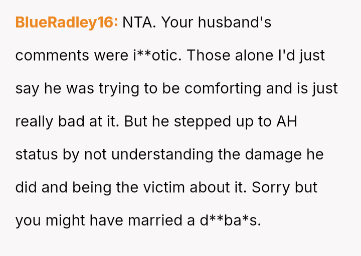 Was the husband's comment an unforgivable act of cruelty, or was it a deeply misguided attempt at communication in a moment of raw grief that warrants understanding, even if not forgiveness?