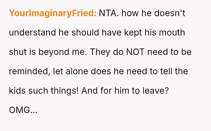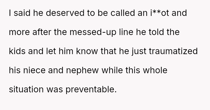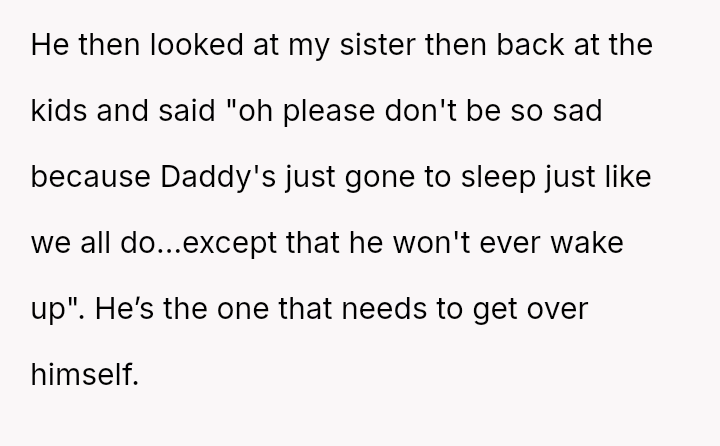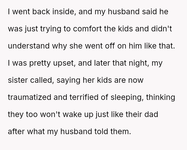 The original poster's husband caused significant distress by making an insensitive and blunt comment about death directly to grieving children during a sensitive family gathering.
