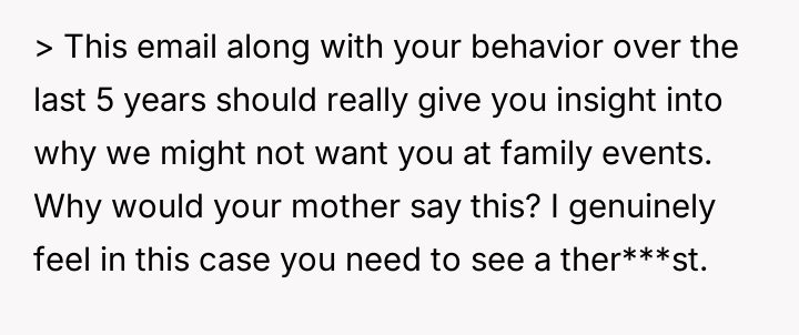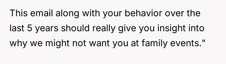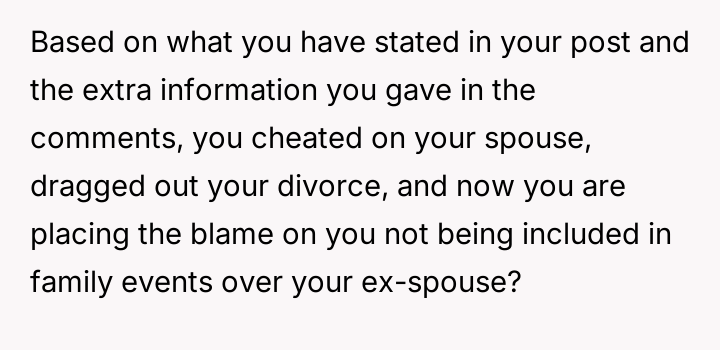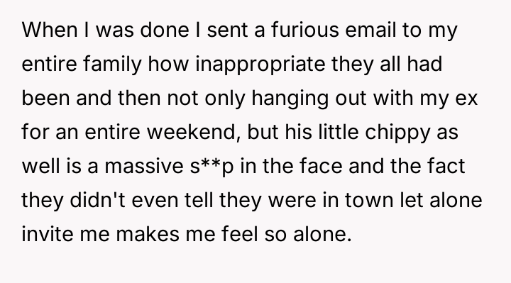 AITA for sending my family an angry email because they still speak to my ex-husband and even have him over, especially in light of his present “relationship” with a girl 20 years younger than him?