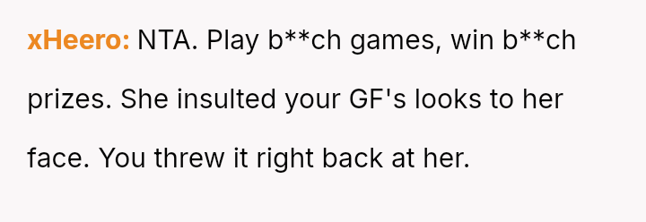 Was the OP justified in his sharp, immediate defense of his current partner against a direct insult, or did his reaction unnecessarily escalate the conflict given their shared social circle and the ex-girlfriend's subsequent emotional withdrawal?