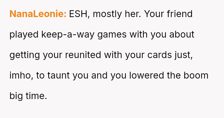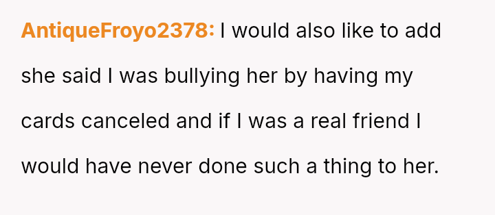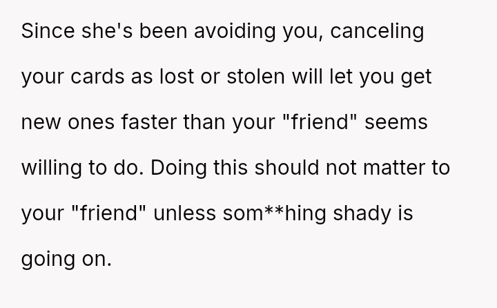 Was the OP justified in escalating the situation by threatening to cancel the cards to protect their finances, even if it provoked an extreme negative reaction from the friend, or should the OP have pursued less confrontational means of recovery given the existing friendship dynamics?