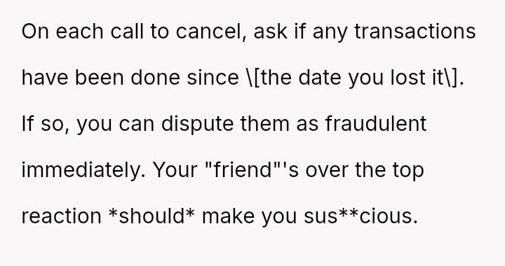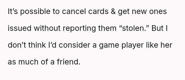 The OP's decisive action of threatening to cancel the cards directly clashed with the friend's reaction, who perceived this measure as an extreme lack of trust and personal accusation rather than a practical solution.