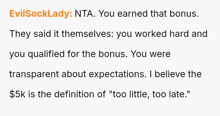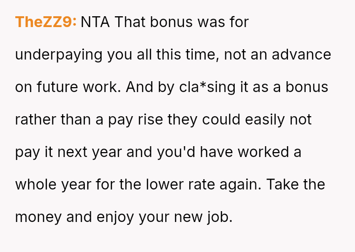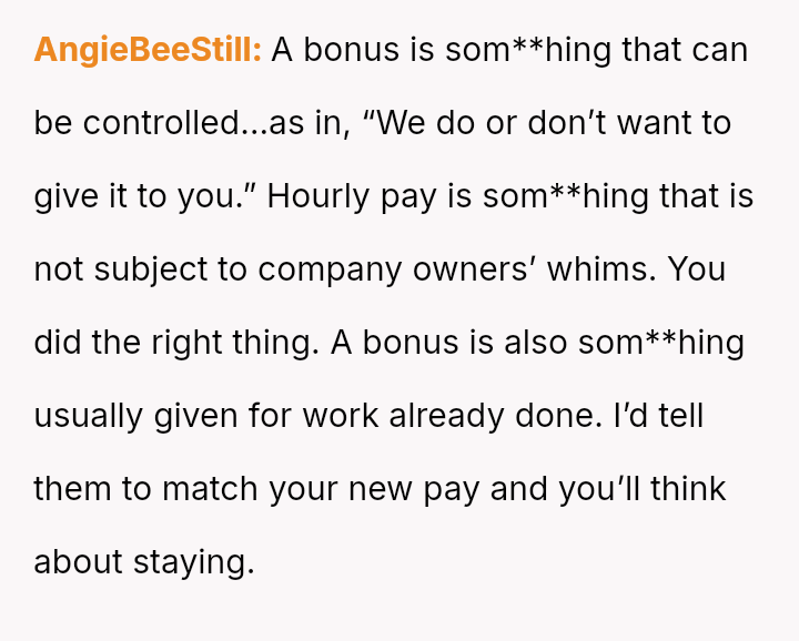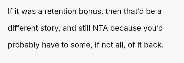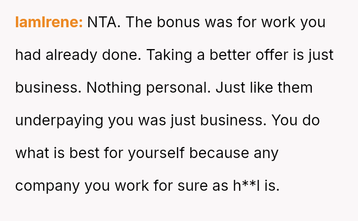The conflict peaked when the company offered a last-minute bonus just as the OP was ready to accept a significantly higher offer elsewhere, leading to a dispute over whether accepting the bonus compromised their professional integrity.