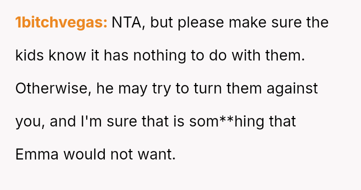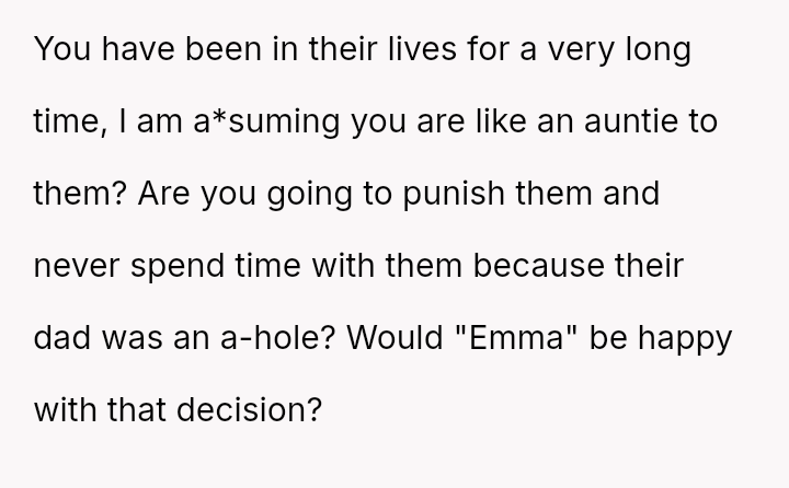 Is the OP upholding her loyalty to Emma, or is she unfairly punishing the children for their father's actions?