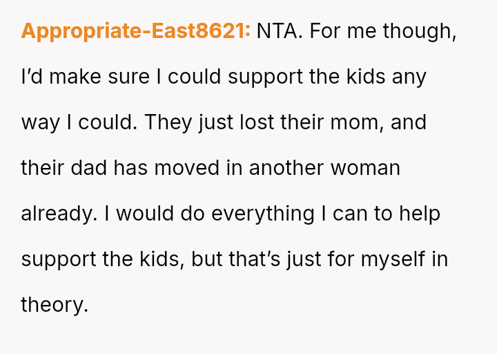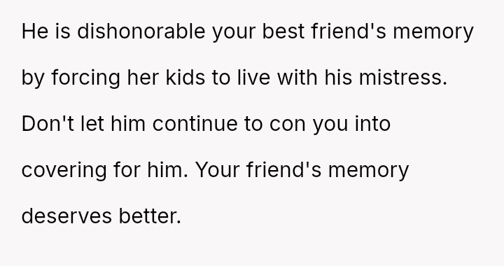 The debate centers on whether personal moral boundaries regarding in***elity and betrayal must yield to the practical needs of children after a tragedy, or if the OP is justified in refusing support to someone who disrespected her friend.